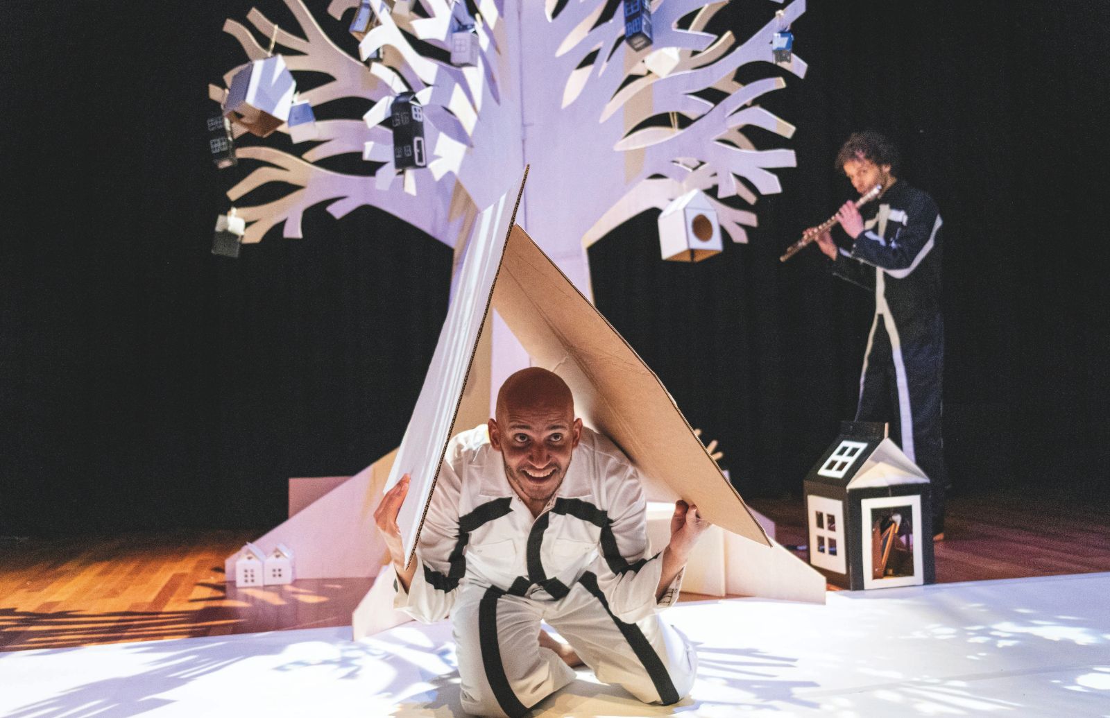 Een mix van mime en muziek over een (t)huis.